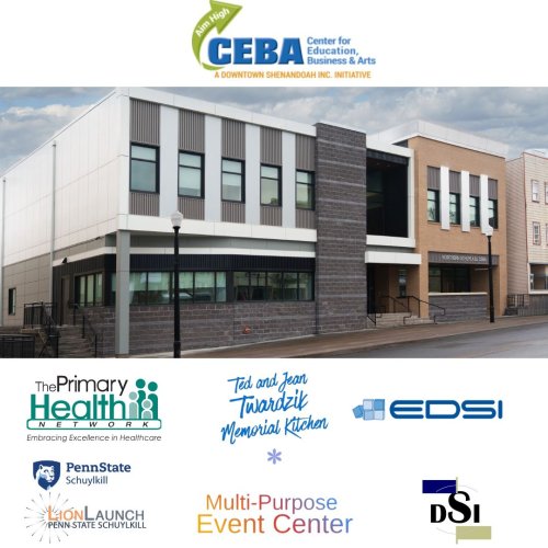 CEBA will include a commercial kitchen, event center with catering kitchen, Penn State classroom, DSI offices, co-working maker and office spaces. CEBA will be located on Main Street in Shenandoah and will serve the entire Schuylkill County region.