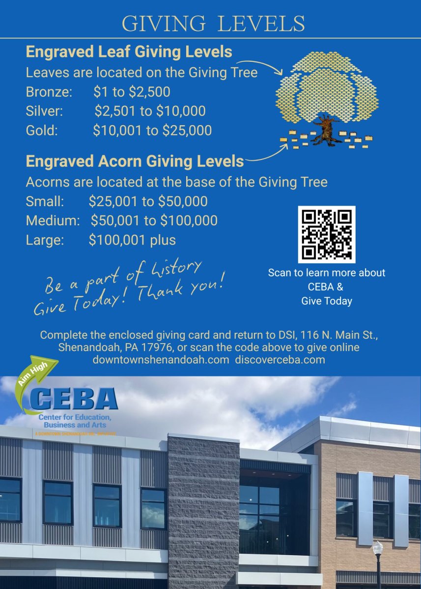 For more information about CEBA, and to donate, scan the QR code above, visit downtownshenandoah.com or discoverceba.com.